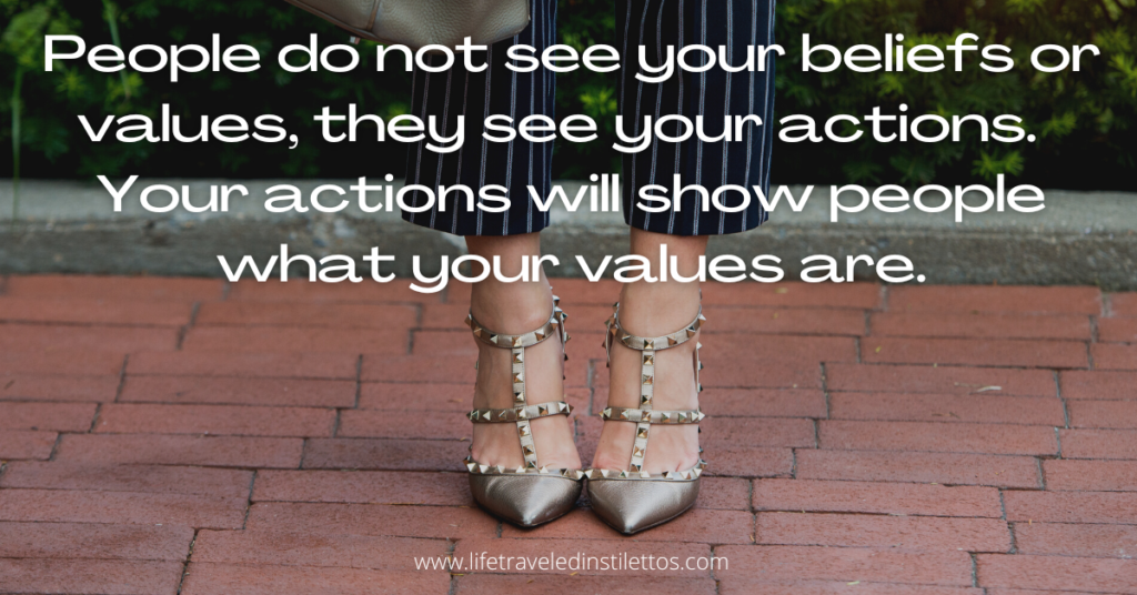 The little nugget of truth we must remember is that we do not need to tell someone what we believe or what our values are if they are in line with our actions. People can not see your beliefs or values. What they see are your actions. Your actions will ultimately tell them what your values are.